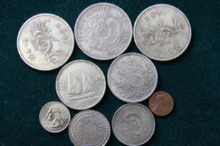 | 4 Dollar-size antique Chinese coins. Price: $20.00 including International Air Mail Shipping. For greater than ten I will quote you a shipping price |