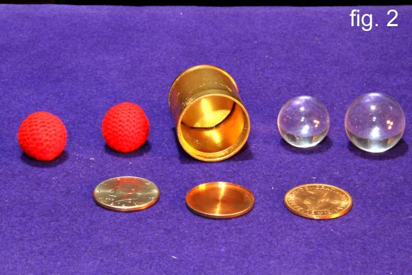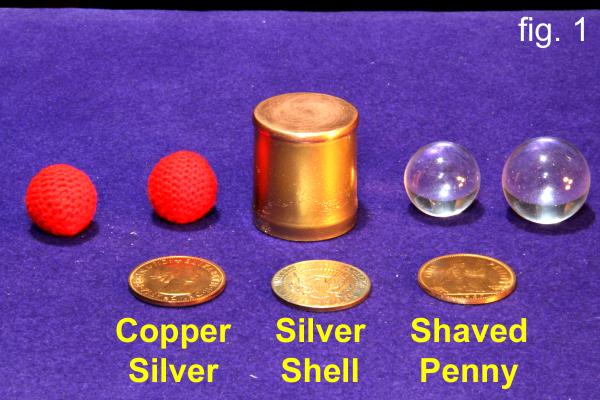 | From Magica V One Time Limited Offer Only Four Units Made PRICE: One Hundred Dollars Includes: 1. One small and one larger acrylic crystal ball 2. Johnson Magic Products fabricated double-sided Kennedy Half/English Penny 3. Johnson Magic Products tail-side half dollar expanded shell 4. Custom shaved-down English Penny 5. Magnetic and regular crochet balls 6. Double-Gaffed Cylinder 7. Velveteen Carrying Pouch Instructions in Chapter 18 of Magica V |