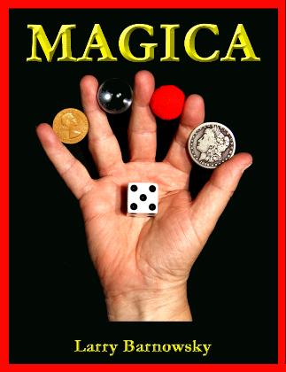| Magica V is the fifth book in the Magica series and my 9th book on magic. 148 pages printed on 80 weight gloss enamel paper 30 chapters with 340 color photos Original magic with cards, coins, balls, dice, matches, bottles, and unique apparatus NOW Shipping 150 numbered copies Price $35 + shipping |